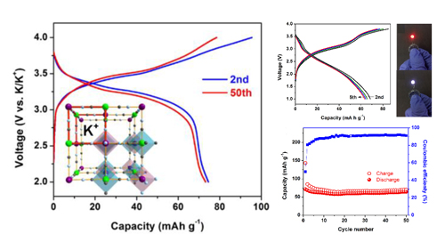 低成本的普魯士藍染料做為鉀離子正極材料的研究及其全電池的匹配設(shè)計,使得鋰離子電池找到了更佳合適的替代者,這項研究為未來鉀離子電池的研究和商業(yè)化應(yīng)用提供了廣闊的前景。本論文已在線發(fā)表在Advanced Functional Materials (DOI :10.1002/adfm.201604307),并于當期Back Cover上做簡要介紹。