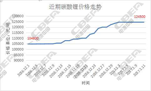 中國(guó)儲(chǔ)能網(wǎng)訊:據(jù)電池中國(guó)網(wǎng)統(tǒng)計(jì),近期碳酸鋰價(jià)格穩(wěn)中有升,從2016年12月1日的104800元/噸上漲到2017年1月11日的124500元/噸,其中,興晟鋰業(yè)、四川國(guó)鋰分別將每噸報(bào)價(jià)提高3000元和1000元。國(guó)補(bǔ)出臺(tái)將進(jìn)一步促進(jìn)新能源汽車行業(yè)的發(fā)展,動(dòng)力鋰電池作為新能源汽車的上游行業(yè)將從國(guó)家政策中受益,同時(shí),作為動(dòng)力鋰電池上游原材料的碳酸鋰也將迎來(lái)利好。然而,盡管碳酸鋰行業(yè)報(bào)價(jià)有提升,節(jié)前實(shí)際成交量并不大,仍需繼續(xù)關(guān)注行業(yè)內(nèi)產(chǎn)能釋放的影響。