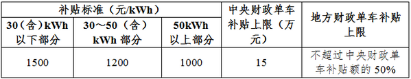 (一)新能源貨車(chē)和專(zhuān)用車(chē)以提供驅(qū)動(dòng)動(dòng)力的動(dòng)力電池總儲(chǔ)電量為依據(jù),采取分段超額累退方式給予補(bǔ)貼,具體如下: