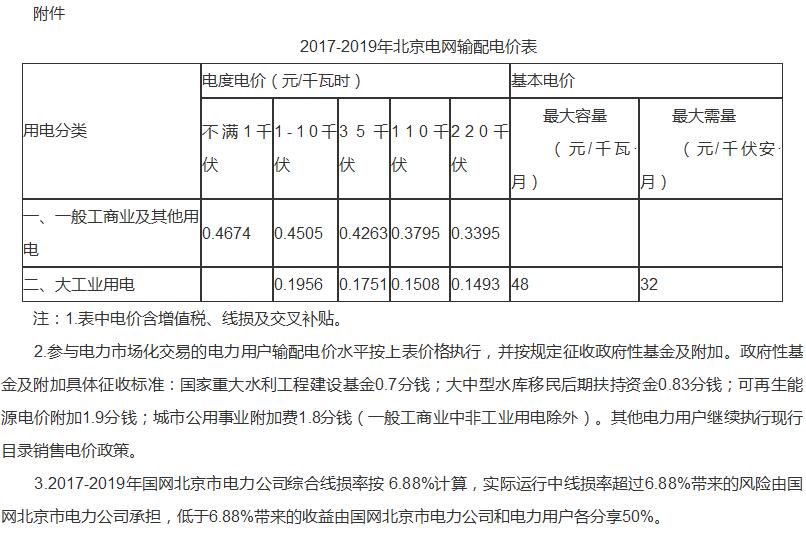 關(guān)于北京電網(wǎng)2017-2019年輸配電價(jià)有關(guān)事項(xiàng)的通知