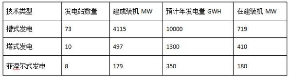 各種太陽能熱發(fā)電技術裝機容量和發(fā)電量統(tǒng)計(粗略統(tǒng)計,截至2016年2月)
