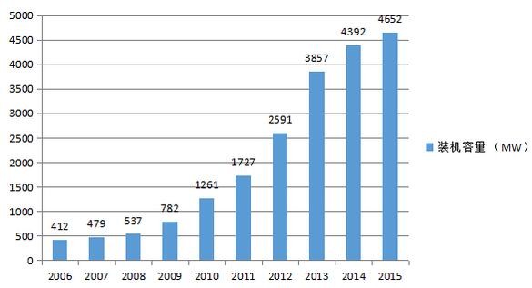 全球太陽能熱發(fā)電累計裝機容量(2006~2015年)