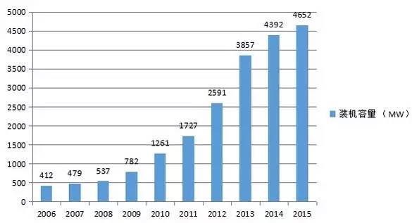 全球太陽能熱發(fā)電累計(jì)裝機(jī)容量(2006~2015年)