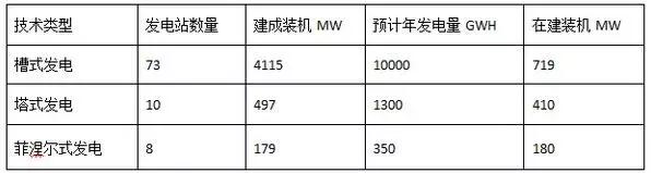 各種太陽能熱發(fā)電技術(shù)裝機(jī)容量和發(fā)電量統(tǒng)計(jì)(粗略統(tǒng)計(jì),截至2016年2月)