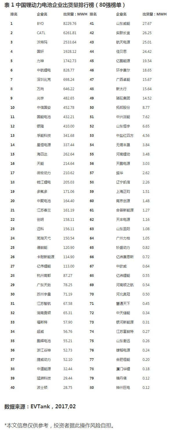 在EVTank發(fā)布的研究報(bào)告中,以附件的形式給出了中國主要?jiǎng)恿﹄姵仄髽I(yè)排行榜,其排行榜依據(jù)為企業(yè)鋰動(dòng)力電池出貨量。