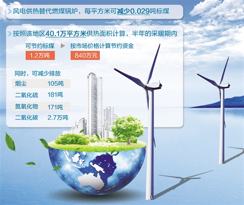 記者了解到,風(fēng)電供暖是將風(fēng)電企業(yè)消納不了的多余風(fēng)電收集起來,用于鍋爐加熱,通過電鍋爐,將加熱的水注入城市供熱管網(wǎng),再送到千家萬戶。與燃煤鍋爐供熱相比,電鍋爐不需要燃煤系統(tǒng),不需要運(yùn)輸煤炭,特別是電供熱系統(tǒng)運(yùn)行管理方便,清潔環(huán)保。通過風(fēng)力發(fā)電帶動電蓄熱鍋爐替代燃煤小鍋爐供熱,不僅帶來實(shí)實(shí)在在的溫暖,而且避免了冬季燃煤供暖帶來的空氣污染問題,也為進(jìn)一步消納風(fēng)電等清潔能源提供了新途徑。