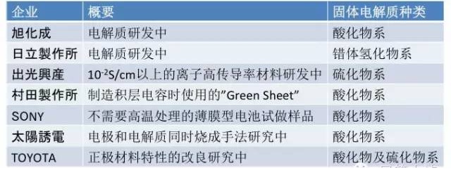 下面對日本企業(yè)的全固體電池研發(fā)狀況做個小結(jié):