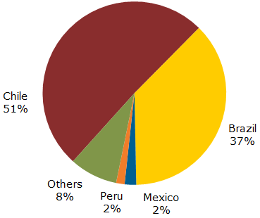 受益于凈電價計量、可再生能源配額(RPS)和其它政策,墨西哥、智利和巴西成為該光伏市場的領導者,預計到2017年三個國家占該地區(qū)總光伏需求的70%左右。