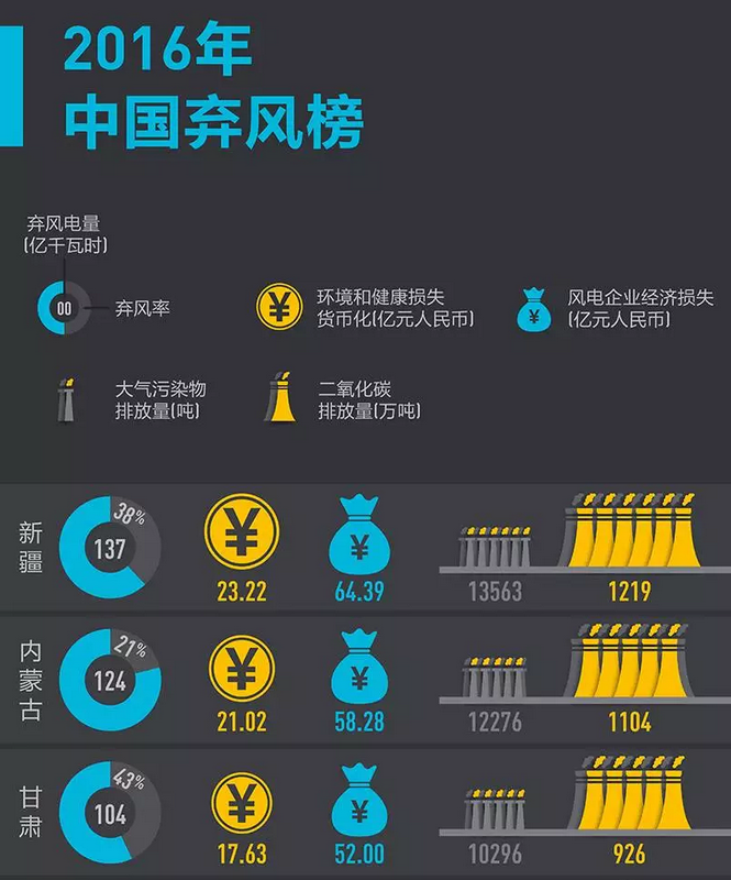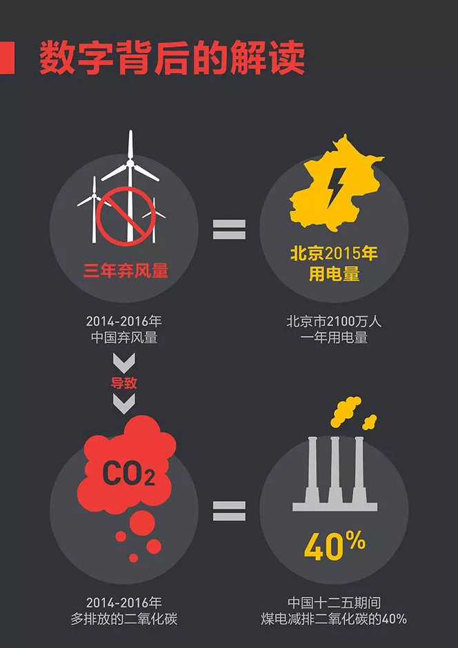 這組數(shù)字的比較,更讓我們對(duì)棄風(fēng)造成的損失感到震驚:2016年中國(guó)浪費(fèi)的風(fēng)電,就可以供一個(gè)大城市用一整年。棄掉清潔的風(fēng)電,不僅造成了風(fēng)電企業(yè)的經(jīng)濟(jì)損失,也大大削弱了其他領(lǐng)域節(jié)能減排、污染防治的效果。