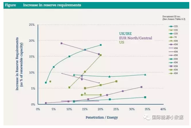 風(fēng)電光伏的系統(tǒng)成本首先要考慮相應(yīng)增加備用電源容量(reserve requirements)。如果風(fēng)電光伏發(fā)電占到電力需求的30%情況下,因?yàn)閭溆秒娫匆笤黾拥某杀炯s為5英鎊/兆瓦時(shí)(合人民幣4.3分/千瓦時(shí))。