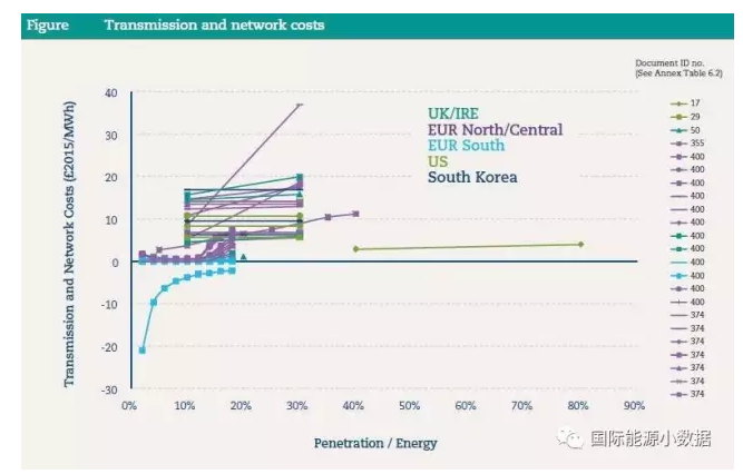 第三項(xiàng)要考慮的系統(tǒng)成本因素是因?yàn)槲{間歇性可再生能源電網(wǎng)所需要的“加固”和“靈活性”改造,此項(xiàng)成本約在5-20英鎊/兆瓦時(shí)(合人民幣0.04-0.17元/千瓦時(shí))。越是不靈活的電網(wǎng),改造成本就越高。但是由于電網(wǎng)本身需要不斷的技術(shù)改造,并和周邊地區(qū)或國家聯(lián)網(wǎng),所以電網(wǎng)改造的成本并不應(yīng)該全部算在可再生能源頭上。