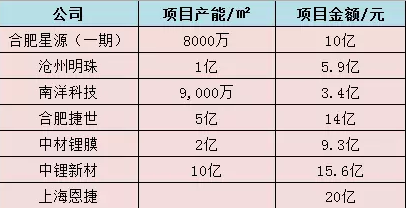 2016年部分國內(nèi)鋰電隔膜建設(shè)項目