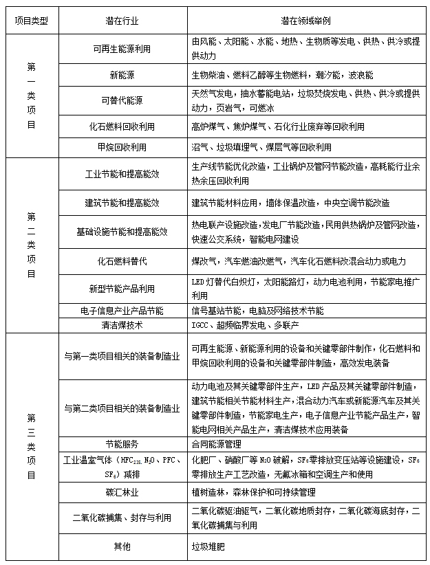 支持范圍包括但不限于:節(jié)能、能效提高、非再生清潔能源、可再生清潔能源,以及與此相關(guān)的制造業(yè)、服務(wù)業(yè)和其他具有減緩或適應(yīng)氣候變化效益、經(jīng)濟(jì)效益和社會(huì)效益好的項(xiàng)目。