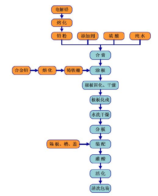 鉛酸蓄電池產(chǎn)品生產(chǎn)工藝主流程圖