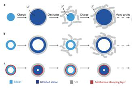 但是,SEI在形成過程中消耗了部分鋰離子,使得首次充放電不可逆容量增加, 降低了電極材料的充放電效率。在循環(huán)過程中,SEI不斷的增長(zhǎng),消耗電解液,會(huì)造成容量的加速衰減。