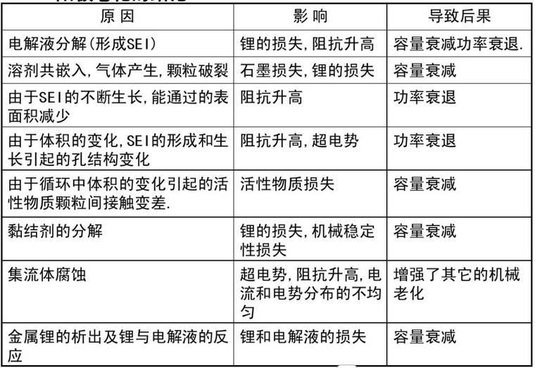 化成及老化工藝對(duì)于電池的壽命發(fā)揮至關(guān)重要。下表是J . Power Source列出的電池老化原理及性能影響。