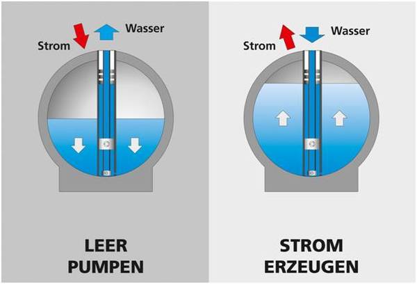 左圖為耗電抽空球中水,右圖為放水入球發(fā)電