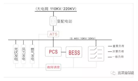 三、電池儲能系統(tǒng)在微電網(wǎng)中的作用至關(guān)重要,在獨立型微電網(wǎng)中,它既要保持微電網(wǎng)電壓和頻率的穩(wěn)定(V/F控制),確保微電源的并網(wǎng)條件,還要提供足夠的能量,保證負(fù)荷的供電需求。獨立型微電網(wǎng)一般用柴油發(fā)電機作備電,主電源與備電之間的切換由微電網(wǎng)調(diào)度來控制。對于小型微電網(wǎng),其調(diào)度策略可能會集成在儲能系統(tǒng)PCS內(nèi)。