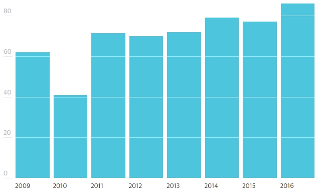 2016年,歐盟國家境內新增裝機容量共2450萬千瓦,其中,有百分之86%(2110萬千瓦)來自于風電、光伏發(fā)電、水電及生物質能發(fā)電,遠超過2014年79%的占比記錄。