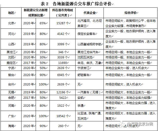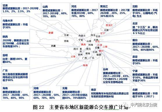 (2)2015年11月3日,交通運輸部、財政部、工業(yè)和信息化部三部委聯(lián)合印發(fā)《新能源公交車推廣應用考核辦法》(試行)。新能源公交車推廣應用目標完成情況主要考核各省(區(qū)、市)每自然年度內(nèi)新增及更換的公交車中新能源公交車的比重。2017年,新增及更換的公交車中新能源公交車的比重20%-60%。