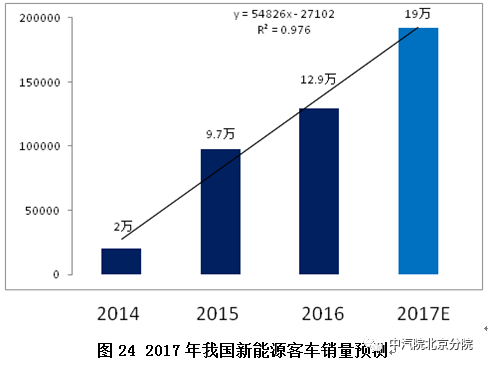 經(jīng)計算,預計2017年新能源客車銷量為19萬輛。