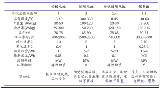 四種主要面向電網(wǎng)的儲(chǔ)能電池參數(shù)對(duì)比
