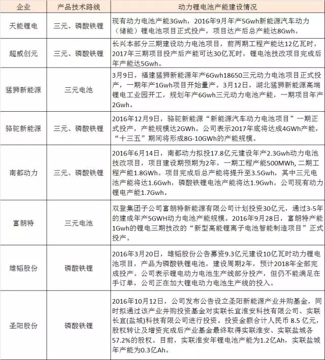 2016年,上述鉛酸企業(yè)的鋰電業(yè)務在業(yè)績增長、產(chǎn)能擴充和產(chǎn)品品質(zhì)提升等方面都取得了較大進展。基于對新能源汽車市場的長期看好以及對企業(yè)技術和產(chǎn)品的信心,這些動力電池企業(yè)并未放緩其在2017年的擴張腳步。