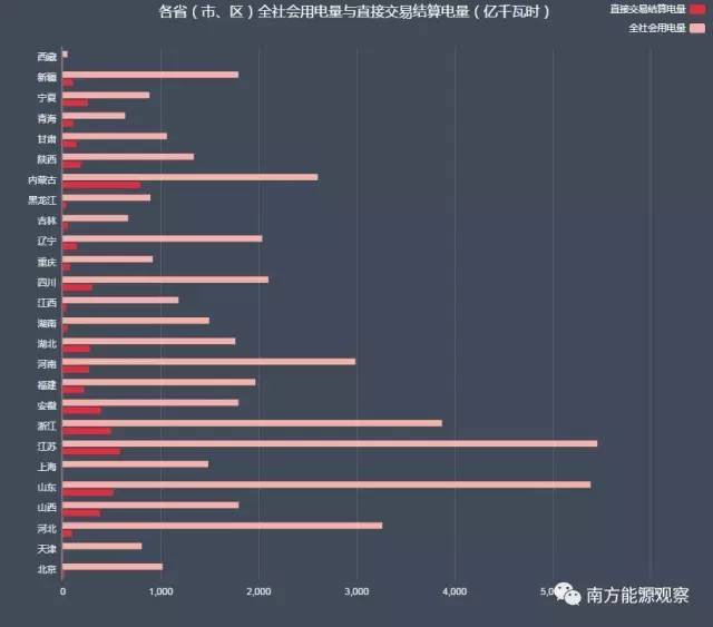 2、電力直接交易電量接近8000億千瓦時,云南省內(nèi)直接交易電量已經(jīng)占其全社會用電量的42%,內(nèi)蒙緊隨其后。