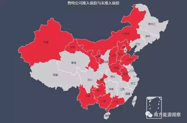圖6 各?。ㄊ小^(qū))售電公司準(zhǔn)入情況(紅色區(qū)域表示已經(jīng)準(zhǔn)入)
