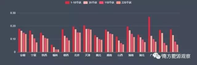 除榆林外,云南、山西、貴州的輸配電價對110千伏及以上高電壓等級大工業(yè)用戶來說吸引力是最大的。而安徽、湖南、北京、冀南等四地的價格則高于其他?。ㄊ?、區(qū))。