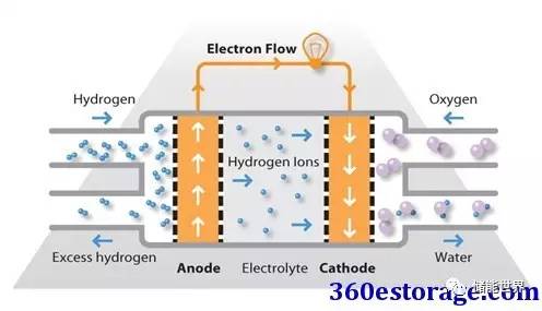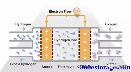氫燃料在陽極處被處理,其中電子與鉑基催化劑的表面上的質子分離。質子通過膜到達電池的陰極側,同時電子在外部電路中行進,產生電池的電輸出。在陰極側,另一個貴金屬電極將質子和電子與氧氣結合以產生水,其作為唯一的廢物排出; 氧可以以純化形式提供,或者在電極處直接從空氣中提取。