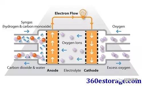 SOFC使用固體陶瓷電解質,例如用氧化釔穩(wěn)定的氧化鋯,而不是液體或膜。它們的高工作溫度意味著燃料可以在燃料電池本身內重整,消除了對外部重整的需要,并允許單元與各種烴燃料一起使用。與其它類型的燃料電池相比,它們還相對耐燃料中的少量硫,因此可以與煤氣一起使用。