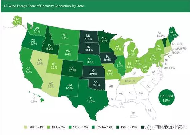 原標(biāo)題:【數(shù)據(jù)】2016年全美風(fēng)電比例達(dá)到5.5%,其中愛荷華州超過36%!