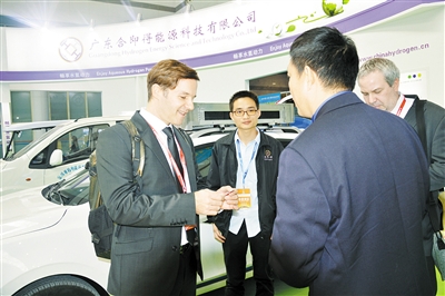 向華博士向領(lǐng)導(dǎo)介紹水氫機(jī)