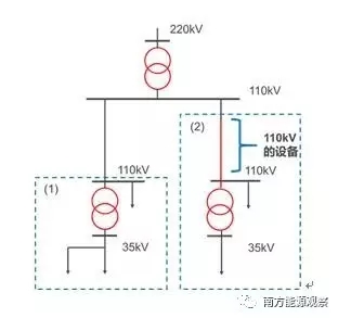 根據(jù)接入公網(wǎng)位置的不同,增量配網(wǎng)可分為兩種類型:一類是接在增量配網(wǎng)的變壓器接線處,另一類接在公網(wǎng)變壓器饋線處,兩種類型地方電網(wǎng)的主要區(qū)別在于主網(wǎng)與配網(wǎng)連接設(shè)備的所有權(quán)不同,如圖1中的(1)和(2),類型(1)中110kV輸電線路及相關(guān)設(shè)備為公共電網(wǎng)所有,類型(2)中 110kV輸電線路及相關(guān)設(shè)備為增量配網(wǎng)所有。按暫行辦法,第(1)類中增量配網(wǎng)專用的110kV接入線路及相關(guān)設(shè)備將由所有公網(wǎng)用戶共同分?jǐn)偅冢?)類增量配網(wǎng)專用的110kV接入線路及相關(guān)設(shè)備將由增量配網(wǎng)用戶分?jǐn)?,顯而易見后者分?jǐn)傇瓌t更為公平。