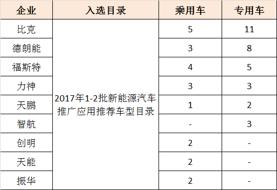 高工鋰電網(wǎng)梳理發(fā)現(xiàn),在2017年1-2批新能源汽車推薦目錄配套電池企業(yè)中,其中,三元電池配套產(chǎn)品共125款,以18650為主要技術(shù)路線的企業(yè)包括比克、福斯特、德朗能、創(chuàng)明、力神、天能、天鵬、振華、智航等均有上榜。