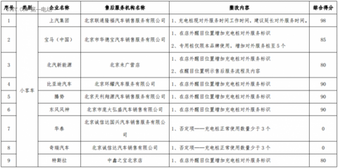 2016年10月17-24日,北京新能源汽車產(chǎn)業(yè)協(xié)會有關(guān)專家對在京已通過備案的13家小客車企業(yè)售后服務(wù)機構(gòu)從充電樁、標識及服務(wù)落實、辦公場地、人力資源、維修設(shè)備五個方面進行了檢查評分。