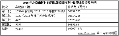 2016年北京市共撥付四批新能源汽車補助資金共涉及22457輛車,撥付資金約17億元。其中北京本地車企(北汽、北京現(xiàn)代及北汽福田)涉及的9739輛車補貼資金約9億元,比亞迪、江淮等8家外地新能源車企的12718輛獲得補貼約8億元,補貼資金占總額的47%。
