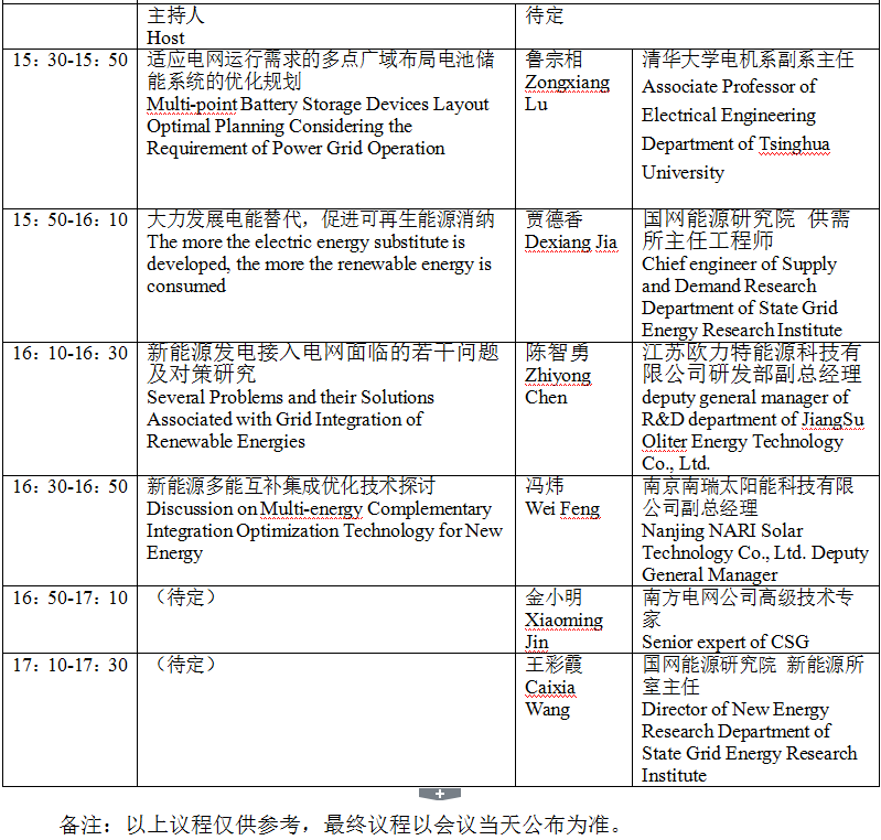 以下為新能源發(fā)電并網(wǎng)專場具體議程安排。
