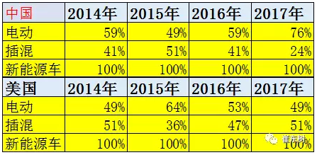 16年以來的中國純電動車發(fā)展較快,插電混動的走勢稍慢。17年1-2月中國插混銷量是新能源車的四分之一。而美國插混是一半。