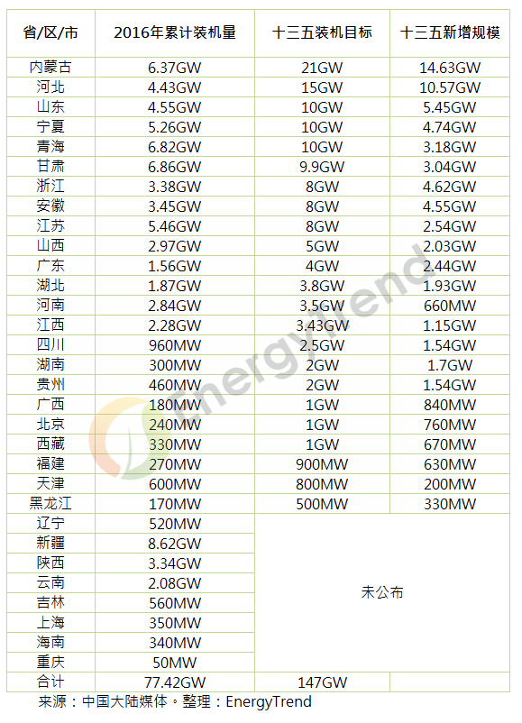 中國已有26個省分推出了十三五光伏裝機(jī)規(guī)劃,其中以內(nèi)蒙古、河北、山東、寧夏、青海的2020年累計裝機(jī)量最高;這幾個省份也將是十三五期間光伏新增規(guī)模最大的地區(qū)。