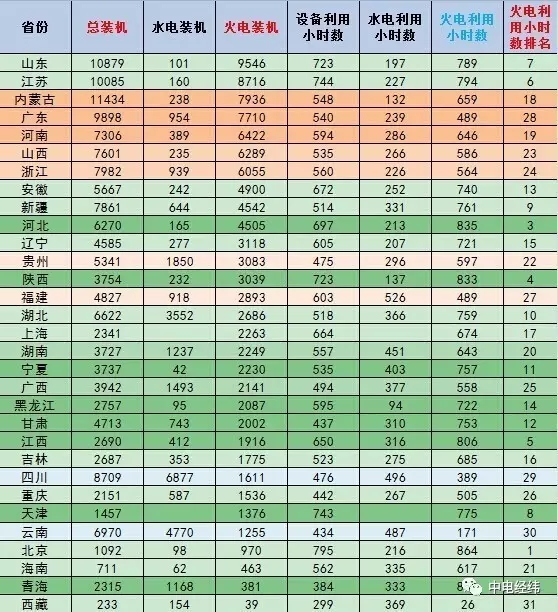 5)青海以水電為主,其火電裝機(jī)排名第30位,但其火電利用小時(shí)數(shù)排名第2位;