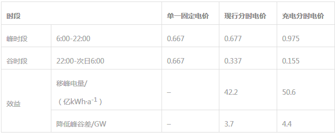 則在電動(dòng)汽車高速發(fā)展情景下,由電動(dòng)汽車有序充電帶來(lái)的削減負(fù)荷峰谷差及新增填谷電量見表2。