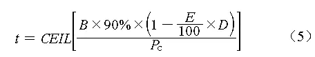 式中:B為動(dòng)力電池額定容量,取30kWh;E為電動(dòng)汽車能效,取15kWh/(100km);D為電動(dòng)汽車日行里程;PC為電動(dòng)汽車單車充電功率,取7kW/輛。