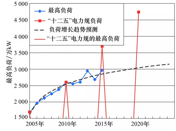圖1 2020年上海電網(wǎng)最高用電負(fù)荷水平估計(jì)