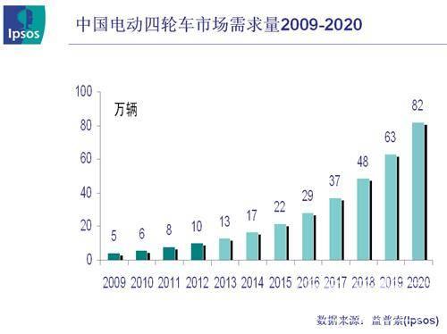 中國有超過9000萬輛摩托車、1億輛以上電動自行車,隨著未來中國城鎮(zhèn)及農(nóng)村道路環(huán)境進一步改善,人們收入水平的逐漸提高,消費者有強烈的出行工具升級換代要求,而小型低速電動四輪車憑借產(chǎn)品性價比高、能提供基本舒適性的特點,在中國超過60%的中低收入人群中擁有廣闊的市場需求。但目前中國低速電動四輪車的標準法規(guī)不健全是產(chǎn)業(yè)未來發(fā)展的最大障礙。益普索咨詢(Ipsos Business Consulting)預測2020年中國電動四輪車總需求有望達到82萬輛。2012-2020年復合年增長率有望達到30%。
