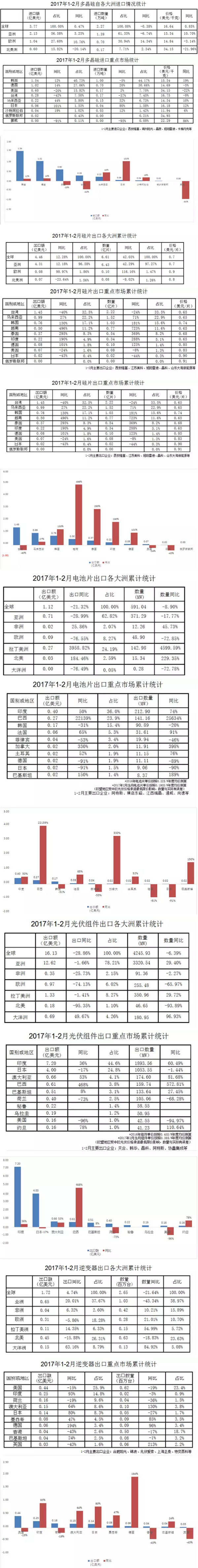 中國儲(chǔ)能網(wǎng)訊:2017年1-2月我國光伏產(chǎn)品外貿(mào)統(tǒng)計(jì)數(shù)據(jù)一攬