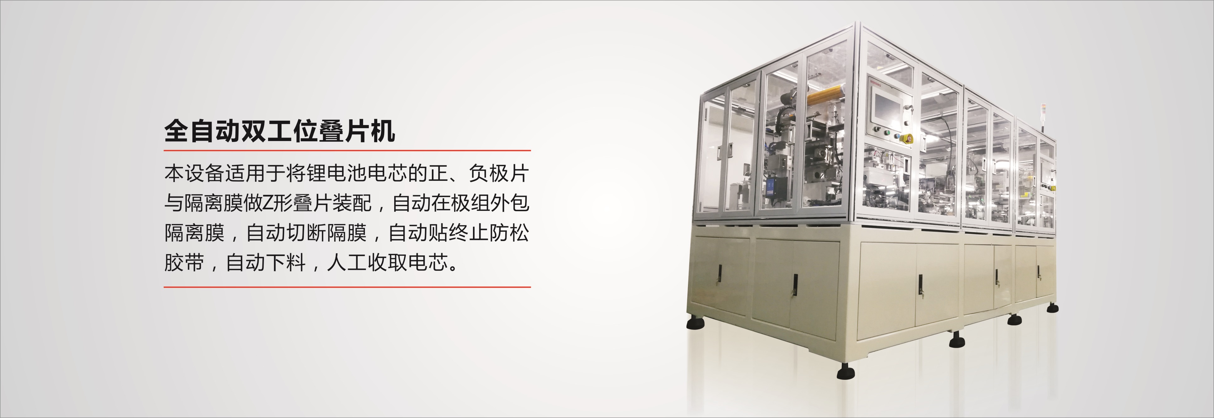 通過多年的技術(shù)創(chuàng)新和經(jīng)驗的積累,鴻寶科技正轉(zhuǎn)型升級為工業(yè)4.0智能自動化高端設(shè)備制造商,完全具備了根據(jù)客戶個性化需求,為其量身打造高智能、高穩(wěn)定性、高效率及高集成的全自動化鋰電池整線生產(chǎn)設(shè)備的專業(yè)技術(shù)能力,通過向客戶提供種類齊全、性價比極高的成熟產(chǎn)品,幫助客戶從根本上達到提升精細化管理水平和提高經(jīng)濟效益的目的,同時也為鋰電池生產(chǎn)設(shè)備采購商提供五星級的一站式個性化服務(wù),引領(lǐng)著鋰電池生產(chǎn)自動化裝備技術(shù)的發(fā)展與創(chuàng)新。