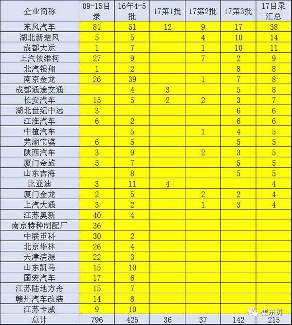 新能源新廠家是很有活力的。第一次的新廠家是安慶安達爾、吉利商用車、以及陜西越低新能源車,這幾家中也大部分是新軍,有利于專用車市場的進一步開拓發(fā)展。第二批中沒有16年沒進入的企業(yè)。