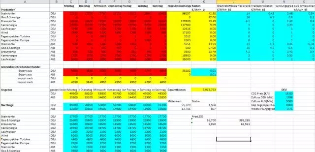 圖中給出了一個小范圍虛擬電廠資源的優(yōu)化組合,在藍(lán)色區(qū)域發(fā)電邊際成本,各機(jī)組裝機(jī)容量及輸配通道用量已定情況下,優(yōu)化紅色區(qū)域各機(jī)組周一至周日出力及外送情況,并計算出黃色區(qū)域各類型機(jī)組最優(yōu)發(fā)電量及發(fā)電成本。